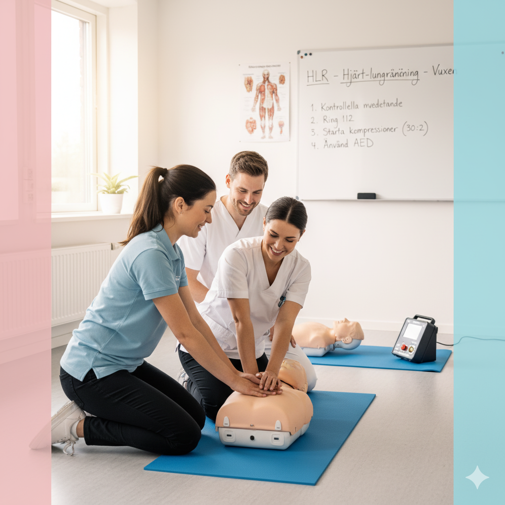 Våra erfarna instruktörer genomför kvalitativa hjärt-lungräddningsutbildningar där det passar er – på plats hos er, när som helst och var som helst i Sverige. Vi tar med allt nödvändigt utbildningsmaterial och anpassar upplägget efter verksamhet och målgrupp.